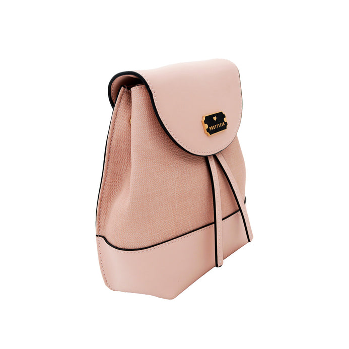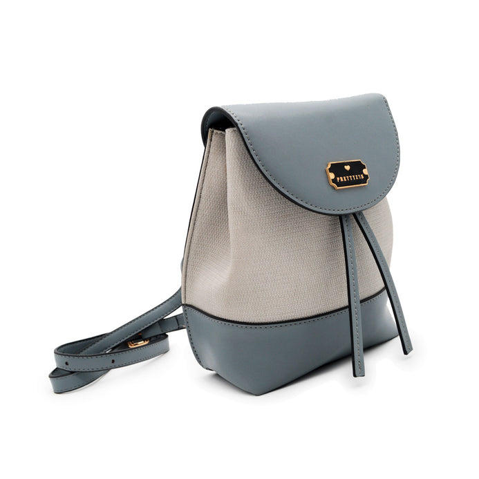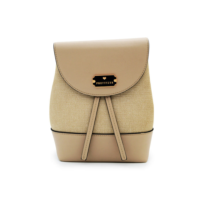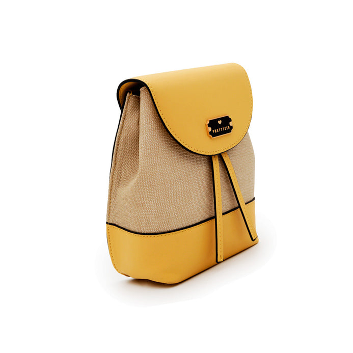 Crossbody con diseño de mochila, y acabado con textura que simula el tejido natural. Elaborado a base de poliuretano (PU), un material con el mismo aspecto que el cuero, pero que no utiliza piel animal. Detalles metálicos en broche y en las asas. En las partes laterales superiores, encuentras un broche que permite ensanchar el bolso.