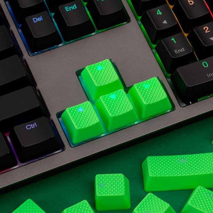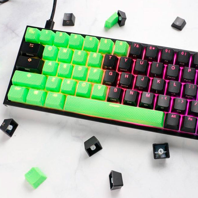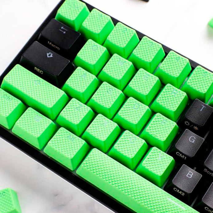 Set de 31 Keycaps (Teclas) para teclado mecanico Ducky Channel. Diseños de teclas en goma verde, perfecto para personalizar tu teclado mecanico. Material ABS