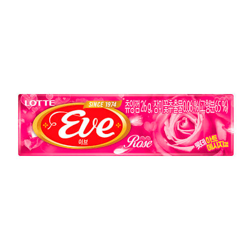 Chicle de rosas de la popular marca LOTTE EVE. Disfruta el increible sabor de rosas ahora en un chicle.