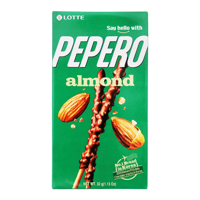 Pepero Almendras. Las más famosas galletas coreanas en formas de palitos recubiertas de chocolate y con trocitos de almendras.