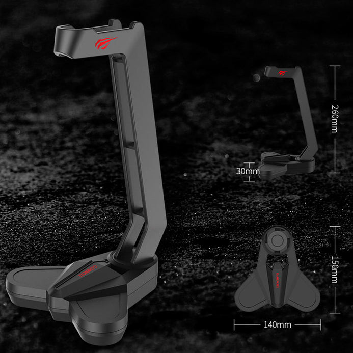 Soporte para audífonos gamer Havit Gamenote. Un accesorio perfecto para mantener ordenado, seguro y listos para usar nuestros audífonos gaming en todo momento.