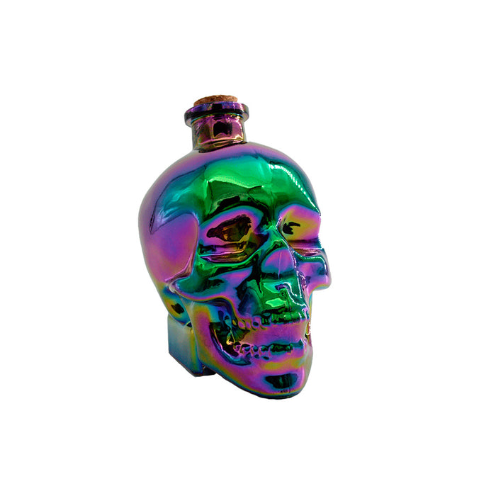 Botella con diseño de calavera holográfica, perfecto para que almacenes cualquier liquido o como accesorio decorativo. La tapa de cierre es de corcho y la capacidad es de 750 ml.
