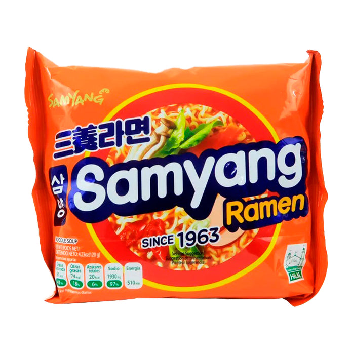 SAMYANG el primer ramen coreano elaborado en 1963, y que hasta la fecha sigue siendo una de las marcas más populares en Corea. Un ramen tradicional con caldo sabor a res y vegetales deshidratados.