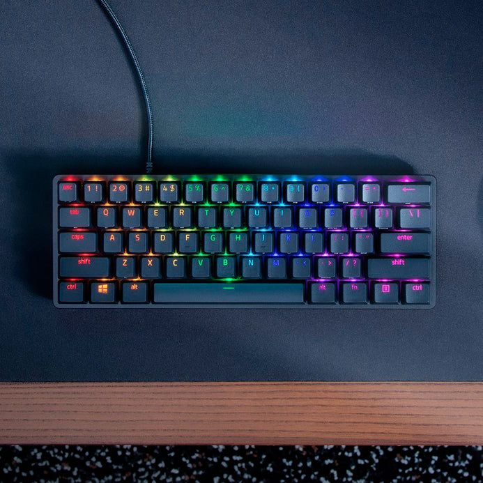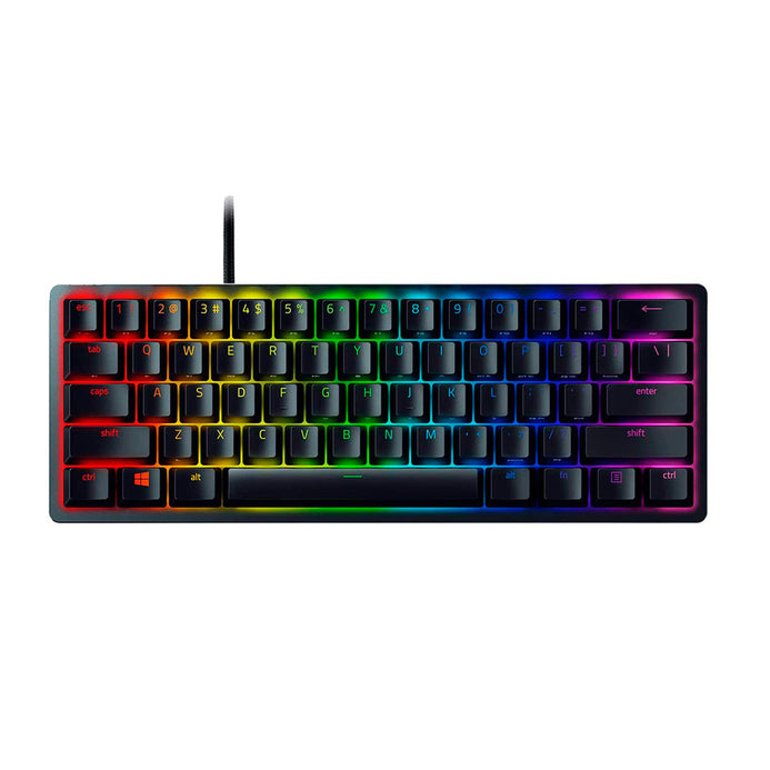 Teclado Mecanico 60 porciento Gamer Razer Huntsman Mini 60%. Diseño minimalista con cable desprendible USB tipo C a USB tipo A.